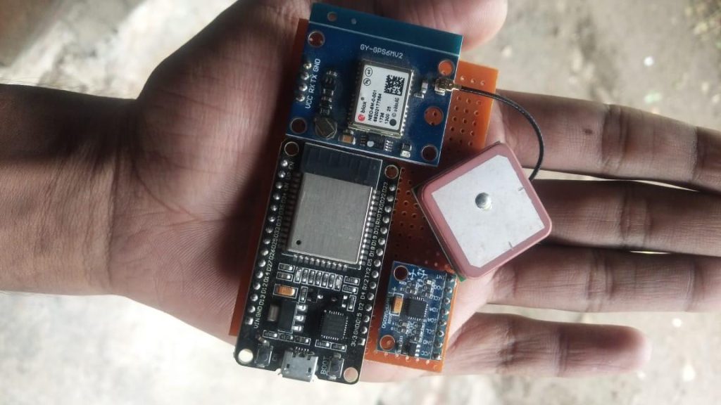 - The Communicator: A9G (GSM/GPRS Module)This is the device’s voice. Once the ESP32 confirms a crash, it passes the GPS coordinates to the A9G module. This module connects to the cellular network (just like a cell phone) and sends a pre-written SOS text message to a stored emergency number. This message includes the alert and a Google Maps link to the location.